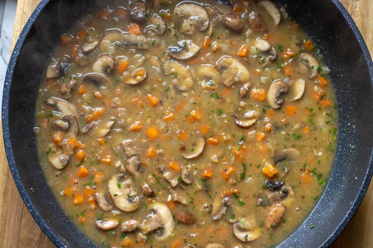 - Sauté the vegetables until just tender - They will finish cooking in the oven, so keep a little bite in the carrots and mushrooms when sautéing.