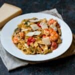 Add the cooked prawns and the parmesan, check the seasoning, and add some salt if needed.